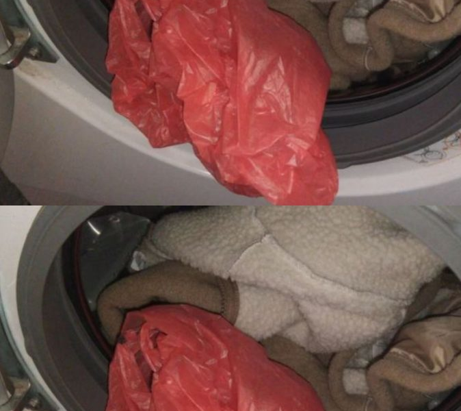 Legen Sie eine Plastiktüte in die Waschmaschine. Du wirst es immer wieder tun