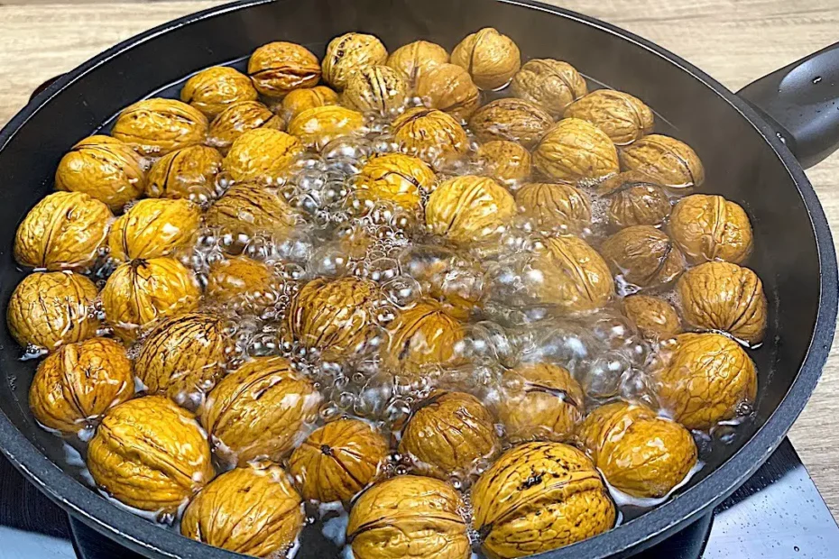 Der Trick, die Nüsse zu kochen, macht die Schale weicher und lässt sich viel leichter öffnen. Das Wasser zum Kochen bringen und die Walnüsse hinzufügen. 5 Minuten kochen lassen . Wir warten 1 Minute und nehmen sie vom Herd. Lassen Sie sie abkühlen. Wenn Sie sie schälen, werden Sie den Unterschied bemerken.