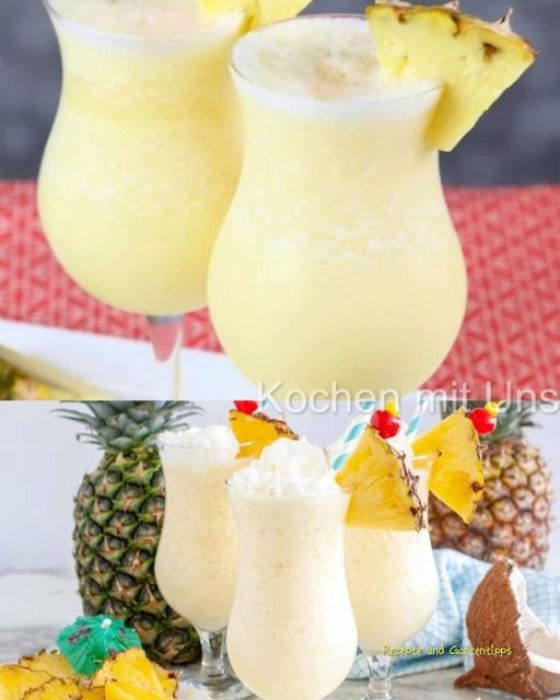 Alkoholfreien Rum, Kokoslikör, Ananassaft, Schlagsahne und