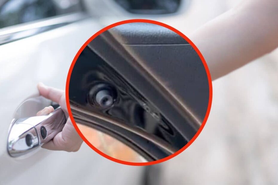 Uma tampa escondida na porta do carro