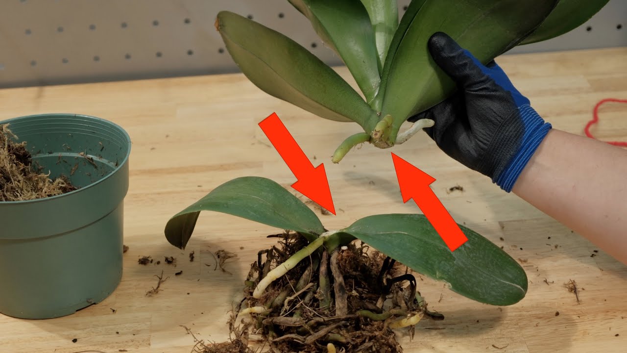 Bevor Sie die Orchidee in den Boden pflanzen, prüfen Sie, ob Anzeichen von Schimmel oder faulen Pflanzenteilen vorhanden sind.