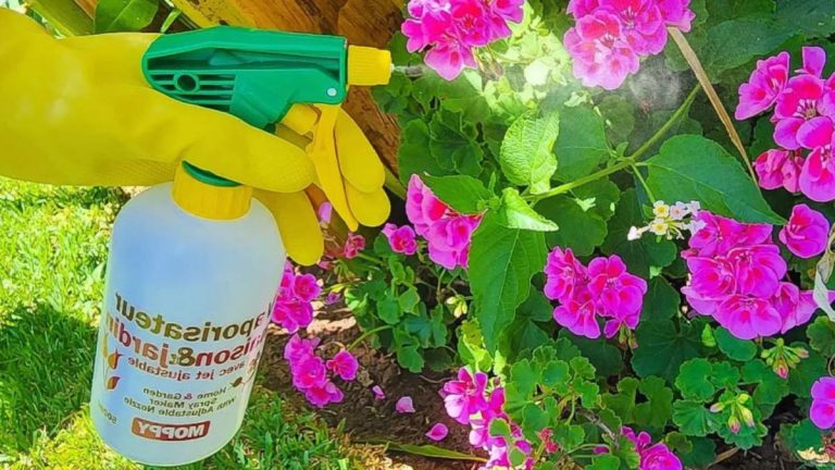 - Gießen Sie Ihr Präparat in eine Sprühflasche und sprühen Sie alle Ecken des Gartens, Wege und um Pflanzen herum! Niemals direkt auf Pflanzen sprühen!