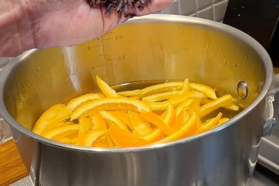 kochende Orangenschalen mit Nelken
