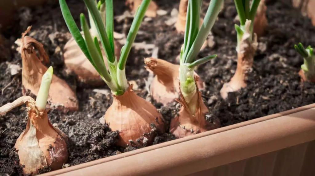 Bewässerung und Pflege: Gießen Sie regelmäßig die Zwiebelgefäße, um die Feuchtigkeit der Zwiebelknollen aufrechtzuerhalten. Bananenpflanzen benötigen ebenfalls regelmäßige Bewässerung, was diese Kombination vorteilhaft macht. Erwägen Sie die Verwendung von organischem Dünger, um sowohl der Bananenpflanze als auch den Zwiebeln lebenswichtige Nährstoffe zuzuführen.